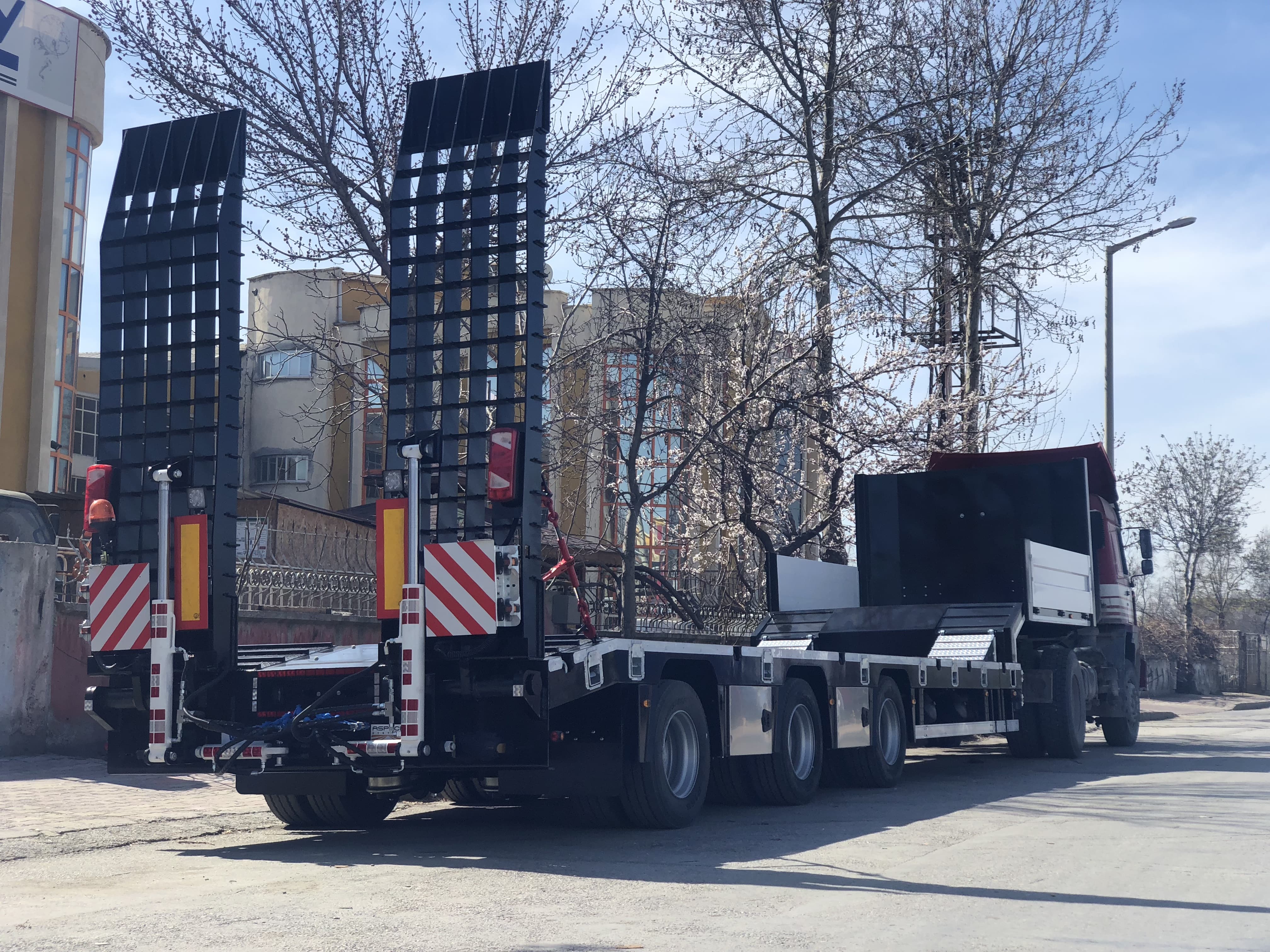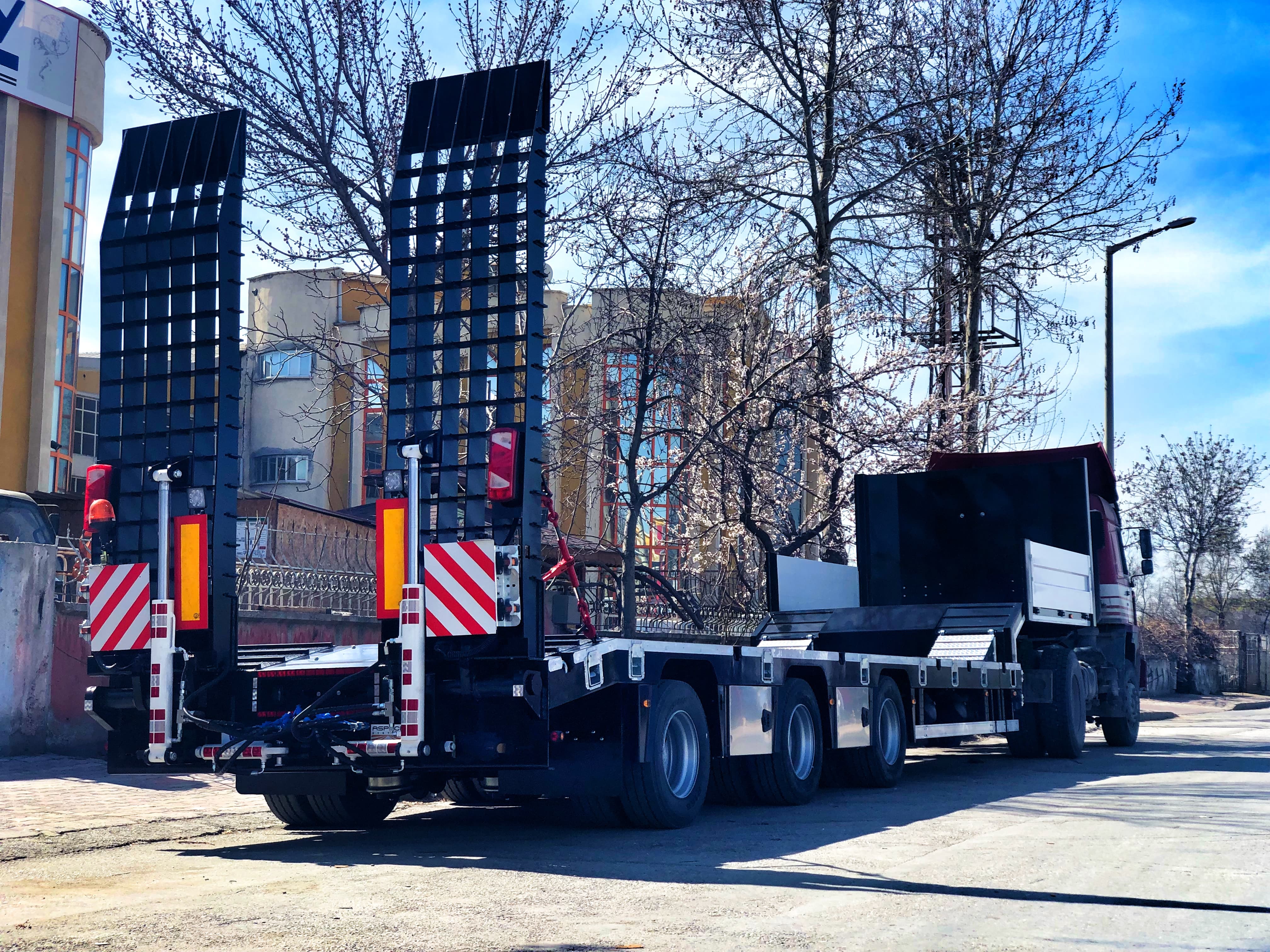ARKA RAMPA: ST-52 Kalite 8mm sacdan imal edilmiş, Havalı-Hidrolik pistonlu arka ayaklar.