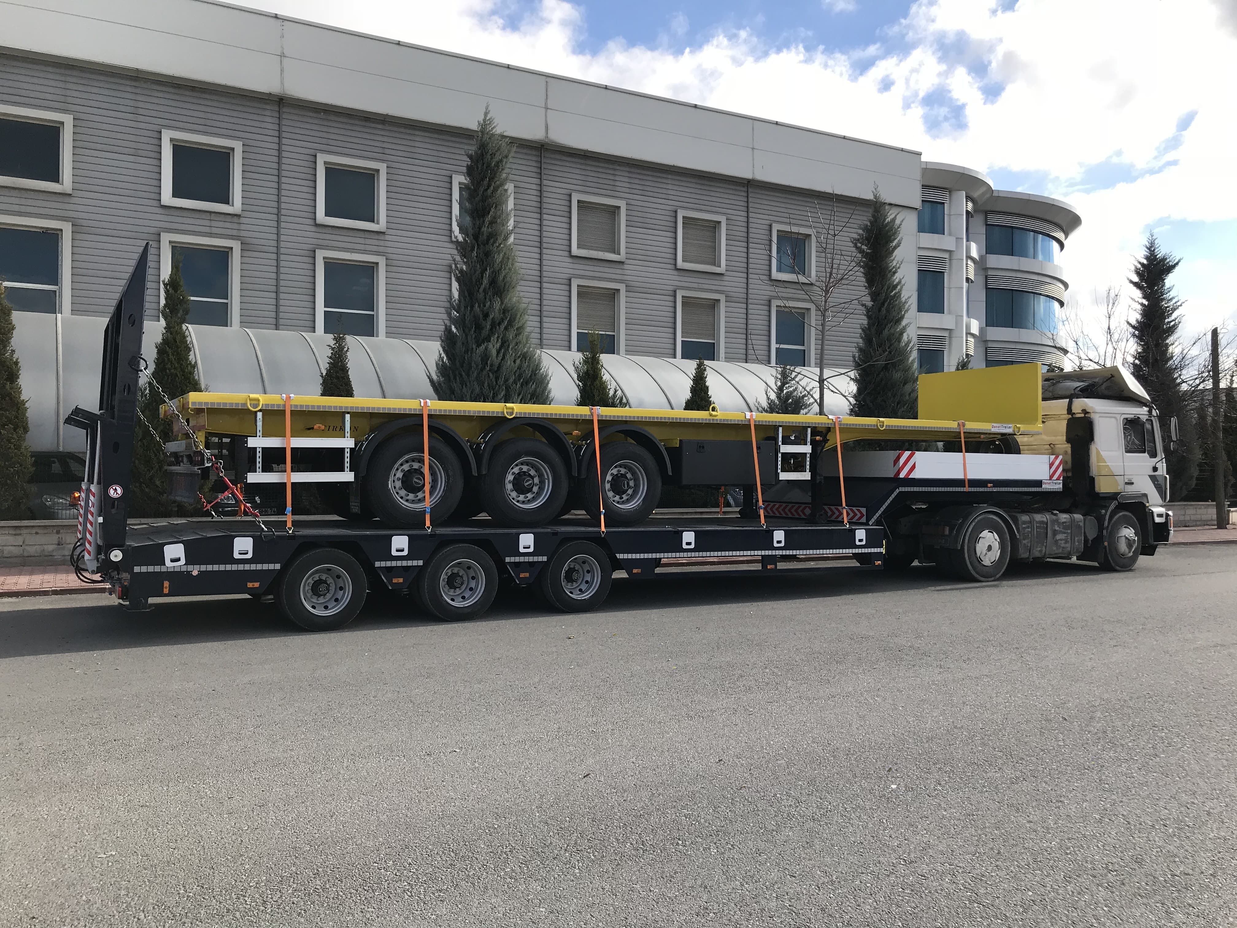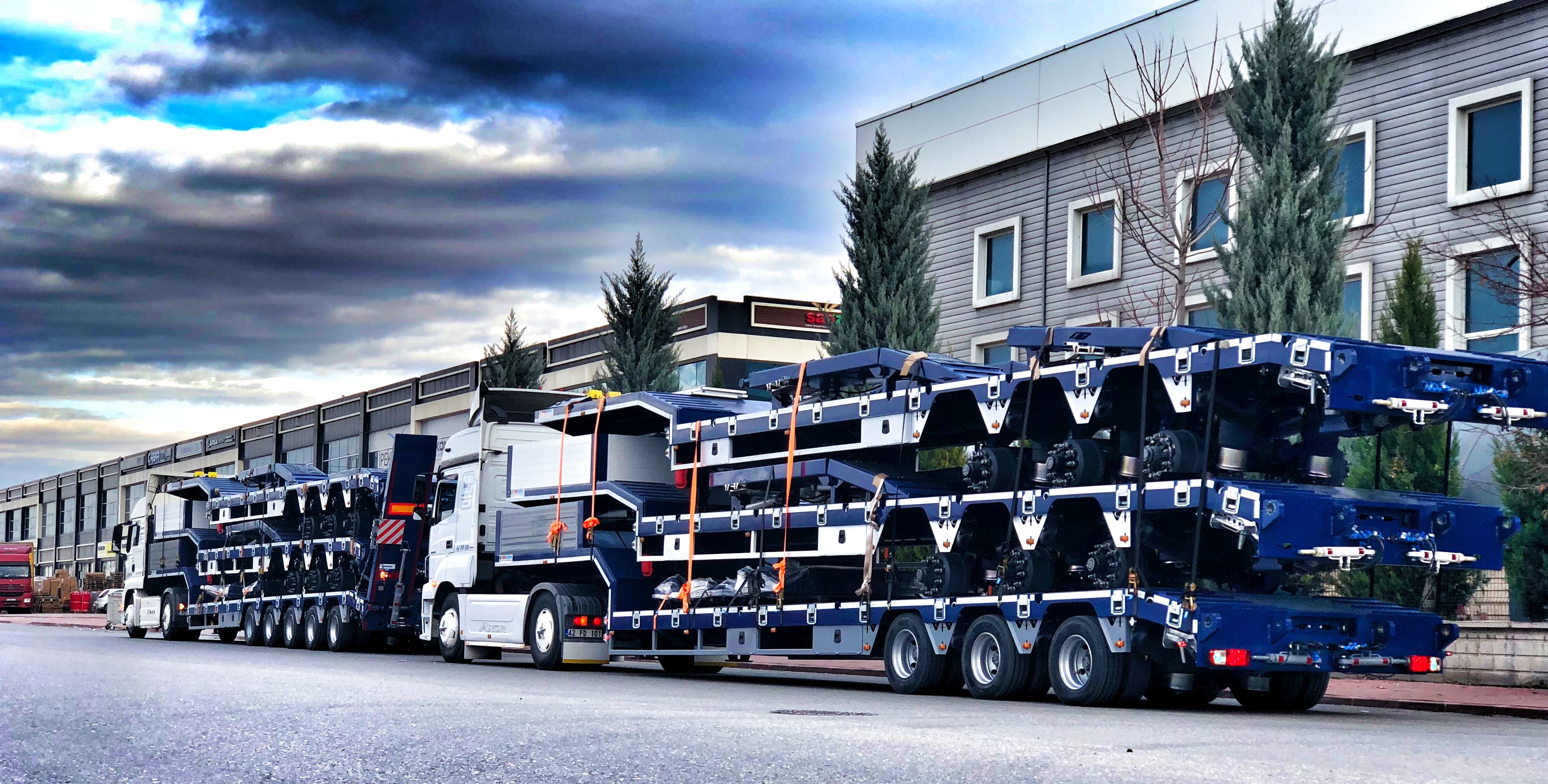 ŞASE: Low-Bed şasisi 20 mm x 150 mm(ST 52 A kalite) alt ve üst lama, 10 mm ST 52 göbek saçından toz altı kaynak makinesi ile kaynak edilir "I" kesitli olarak 2 adettir. Şasi alttan şasiyi boydan boya geçen 160 NPI traverslerle desteklenmektedir. (Müşteri isteğine göre araç uzamalı yapılabilir)